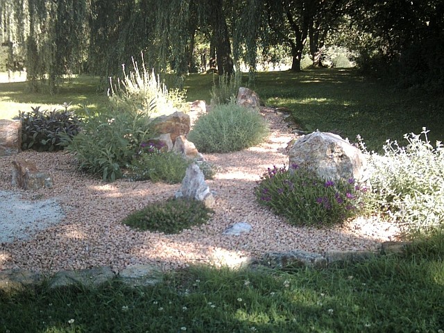 La rareté de l'eau devient une préoccupation. Priorité aux légumes qui ne peuvent s'en passer alors que certaines plantes d'ornement s'accomodent de la sécheresse. Ici, le Yuca est dans son élément avec l'Immortelle d'Italie, fétuc bleu,oeillet mignardise, etc...